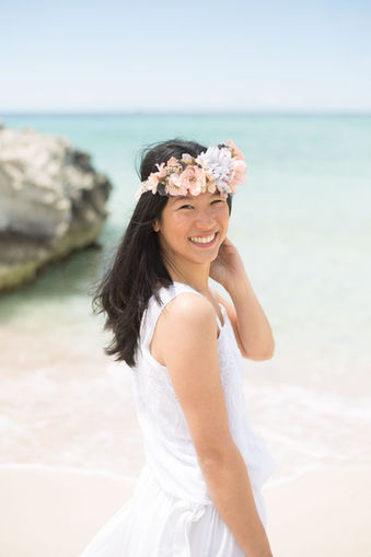 Lisa: Tocado de flores para la pre-boda y tocado de gasa y pedrería para la ceremonia.