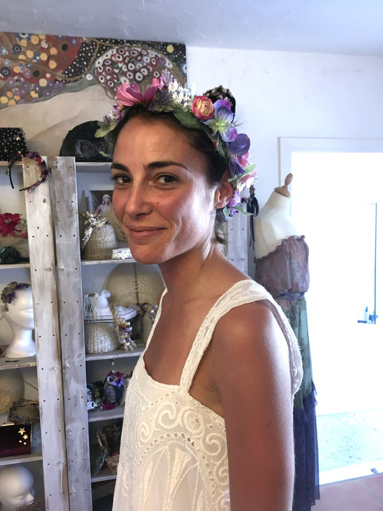 Lourdes. Mi amiga Lu, con tocado de flores silvestre